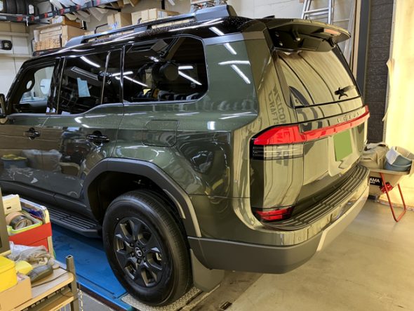 テレーンカーキマイカメタリックなボディカラーが 印象に残るGX550をお預かりして、 高性能カーセキュリティ +α のお取付けを させて頂きました。