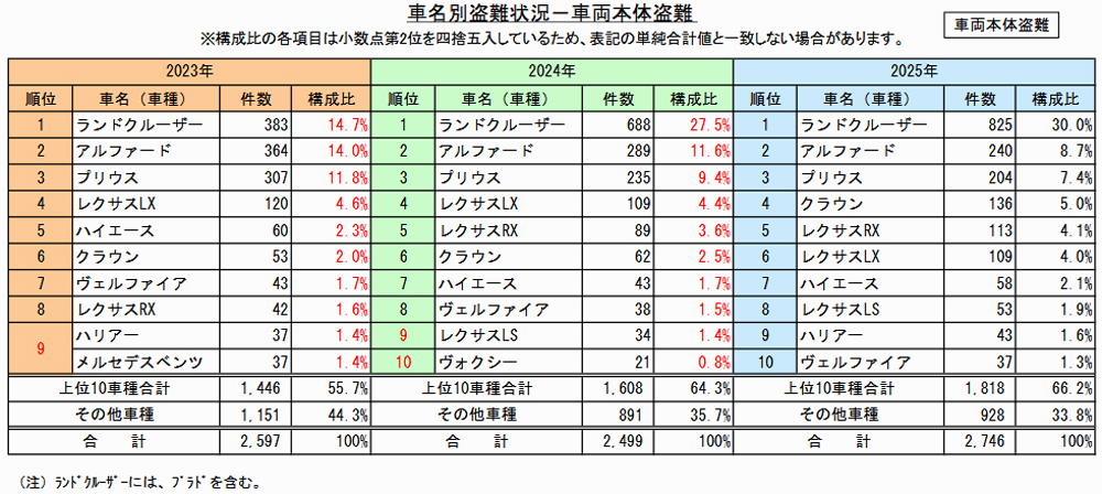 今まで盗難が多い車種と言えば、 「ランクルとアルファード」 から、徐々にですが、 「ランクルとLEXUS車」 に移行しているように見えます。