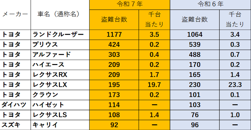近年、盗難被害が、 ランクルシリーズに 集中している傾向があります。