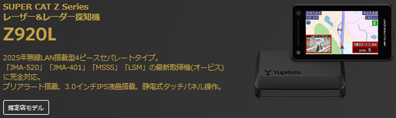 ユピテル 新セパレート・レーダー探知機 Z920Lが発売開始。