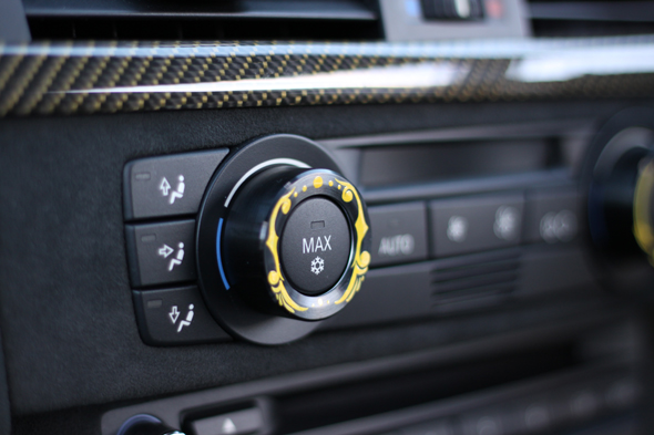 ウチのM3のボディカラーに合わせて、黒いエアコンダイヤルにイエローで思いついたイメージをササッと!