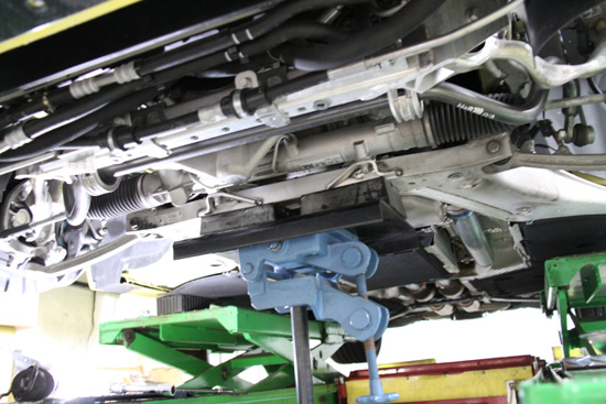 これは自動車メーカーが生産効率を上げるために、ボディとサブフレームを固定するのに使用するボルト径とそのボルトが通る穴に隙間があるからです。そしてもう一つ、ボディとサブフレームの密着する面の精度の問題。